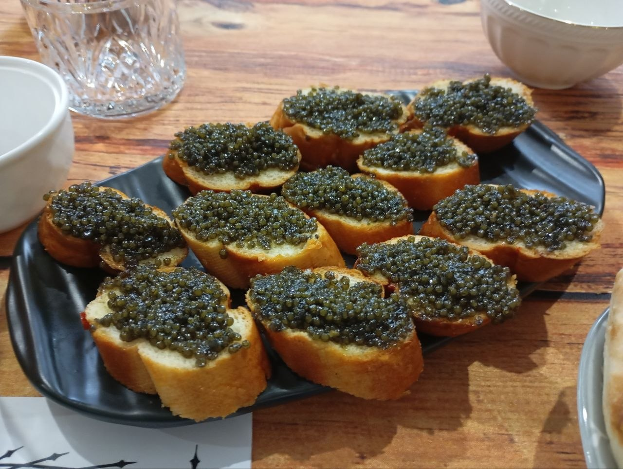 чёрная икра - какое-то шме другу зашмировалось несколько банок после того как один горе-бизнесмен обосрался в своём горе-бизнесе и другу пришлось у него эти банки изъять в качестве оплаты услуг хранения и прочего бана стоит под 50к, при том вкус менее прикольный чем у красной сделали с ней закусы, так гости не доели даже зато было вампирно